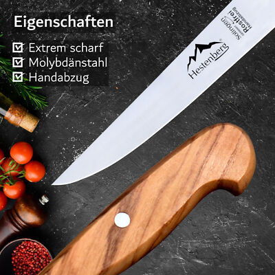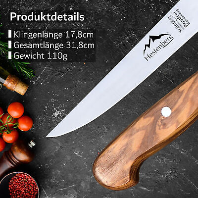 Die Küchenmesser mit echten Olivenholzgriffen von HESTENBERG Solingen sind die perfekten Werkzeuge für Profis und Hobbyköche, die höchste Ansprüche an Qualität und Leistung stellen. Hergestellt in Solingen, der berühmten Stadt der Klingenherstellung, bieten diese Messer eine unübertroffene Schärfe und Präzision.